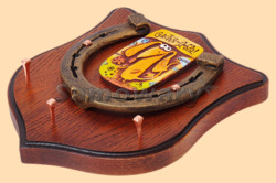Размер медальона 19 на 22 см, с дополнительными подвесами чтобы вешать ключи (ключница) Медальон для подковы изготовлен из бука, покрашен под вишню и покрыт матовым лаком Размер подковы 13 на 13 см Подкова штампованная, покрыта патиной с медью По центру подковы размещена декоративная керамическая вставка Вес подковы - 900 гр. Производитель Россия