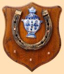 Подкова Самовар гжель позолоченный (цвет медальона дуб, подкова патина с медью, ключница) (арт. 46383)