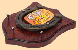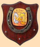 Размер медальона 19 на 22 см, с дополнительными подвесами чтобы вешать ключи (ключница) Медальон для подковы изготовлен из бука, покрашен под вишню и покрыт матовым лаком Размер подковы 13 на 13 см Подкова штампованная, покрыта патиной с золотом По центру подковы размещена декоративная керамическая вставка Вес подковы - 900 гр. Производитель Россия