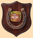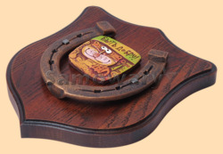 Размер медальона 19 на 22 см Медальон для подковы изготовлен из бука, покрашен под вишню и покрыт матовым лаком Размер подковы 13 на 13 см Подкова штампованная, покрыта патиной с медью По центру подковы размещена декоративная керамическая вставка Вес подковы - 900 гр. Производитель Россия
