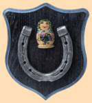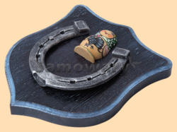 Размер медальона 19 на 22 см Медальон для подковы изготовлен из бука, покрашен под венге и покрыт матовым лаком Размер подковы 13 на 13 см Подкова штампованная, покрыта патиной с серебром По центру подковы размещена декоративная накладка в виде матрёшки с традиционным русским народным сюжетом Вес подковы - 850 гр. Производитель Россия