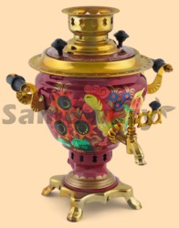 Самовар: - объем 2 литра - высота самовара 32 см - ширина самовара по ручки 30 см - материал: латунь - расписан вручную, покрыт лаком - мощность ТЭНа 1 кВт, время закипания 18-20 минут - вес самовара 2,3 кг - производитель Россия (Тула)