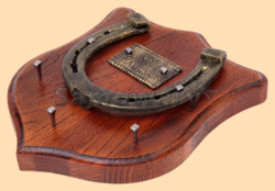 Размер медальона 19 на 22 см, с дополнительными подвесами чтобы вешать ключи (ключница) Медальон для подковы изготовлен из бука, покрашен под вишню и покрыт матовым лаком Размер подковы 13 на 13 см Подкова штампованная, покрыта патиной с золотом Размер таблички 4 на 7 см Табличка кованная, покрыта патиной с золотом Вес подковы - 900 гр. Производитель Россия