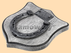 Размер медальона 19 на 22 см Медальон для подковы изготовлен из бука, покрашен под светлое дерево и покрыт матовым лаком Размер подковы 13 на 13 см Подкова штампованная, покрыта патиной с серебром Размер таблички 4 на 7 см Табличка кованная, покрыта патиной с серебром Вес подковы - 900 гр. Производитель Россия