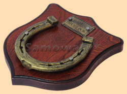 Размер медальона 19 на 22 см Медальон для подковы изготовлен из бука, покрашен под вишню и покрыт матовым лаком Размер подковы 13 на 13 см Подкова штампованная, покрыта патиной с золотом Размер таблички 4 на 7 см Табличка кованная, покрыта патиной с золотом Вес подковы - 900 гр. Производитель Россия