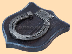 Размер медальона 19 на 22 см Медальон для подковы изготовлен из бука, покрашен под венге и покрыт матовым лаком Размер подковы 13 на 13 см Подкова штампованная, покрыта патиной с серебром Размер таблички 4 на 7 см Табличка кованная, покрыта патиной с серебром Вес подковы - 900 гр. Производитель Россия