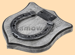 Размер медальона 19 на 22 см Медальон для подковы изготовлен из бука, покрашен под светлое дерево и покрыт матовым лаком Размер подковы 13 на 13 см Подкова штампованная, покрыта патиной с серебром Размер таблички 4 на 7 см Табличка кованная, покрыта патиной с серебром Вес подковы - 900 гр. Производитель Россия