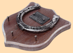 Размер медальона 19 на 22 см, с дополнительными подвесами чтобы вешать ключи (ключница) Медальон для подковы изготовлен из бука, покрашен под орех и покрыт матовым лаком Размер подковы 13 на 13 см Подкова штампованная, покрыта патиной с серебром Размер таблички 4 на 7 см Табличка кованная, покрыта патиной с серебром Вес подковы - 900 гр. Производитель Россия