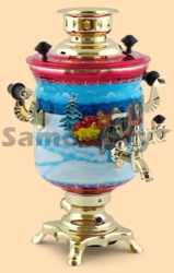 Каталог » Самовары ЭЛЕКТРИЧЕСКИЕ » Самовары электрические с терморегулятором (Россия) » Самовар электрический с терморегулятором Тройка зима на красном Презент (3л)