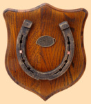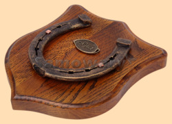 Медальон для подковы изготовлен из бука, покрашен под дуб и покрыт матовым лаком