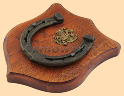 Размер медальона 19 на 22 см Медальон для подковы изготовлен из бука, покрашен под вишню и покрыт матовым лаком Размер подковы 13 на 13 см Подкова штампованная, покрыта патиной с золотом Размер декоративной накладки из бронзы в виде Герба России 4,5 на 5 см Вес подковы - 850 гр. Производитель Россия