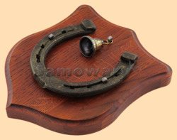 Размер медальона 19 на 22 см Медальон для подковы изготовлен из бука, покрашен под вишню и покрыт матовым лаком Размер подковы 13 на 13 см Подкова штампованная, покрыта патиной с золотом В центре медальона закреплен Валдайский колокольчик с чернью и гравировкой "На счастье и Удачу" Высота колокольчика 3,5 см, диаметр 3 см, материал латунь Вес подковы - 900 гр. Производитель Россия