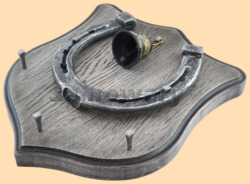 Размер медальона 19 на 22 см, с дополнительными подвесами чтобы вешать ключи (ключница) Медальон для подковы изготовлен из бука, покрашен под светлое дерево и покрыт матовым лаком Размер подковы 13 на 13 см Подкова штампованная, покрыта патиной с серебром В центре медальона закреплен Валдайский колокольчик с чернью и гравировкой "На счастье" Высота колокольчика 4 см, диаметр 3,5 см, материал латунь Вес подковы - 900 гр. Производитель Россия