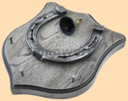 Размер медальона 19 на 22 см, с дополнительными подвесами чтобы вешать ключи (ключница) Медальон для подковы изготовлен из бука, покрашен под светлое дерево и покрыт матовым лаком Размер подковы 13 на 13 см Подкова штампованная, покрыта патиной с серебром В центре медальона закреплен Валдайский колокольчик с чернью и гравировкой "На удачу" Высота колокольчика 4 см, диаметр 3,5 см, материал латунь Вес подковы - 900 гр. Производитель Россия
