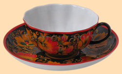 (УЦ) Чайная пара из керамики Хохлома Маки (низкая, 200 мл) (арт. 48351)