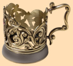 Подстаканник с цветными эмалями. Эмаль - это непрозрачная цветная стекловидная масса, которой покрывают поверхность металлических изделий. Диаметр основания - 7,5 см, высота подстаканника (без стакана) - 9 см. Материал - латунь (литье) Покрытие - никель (чернение) Данный подстаканник дополнительно можно покрыть серебром и позолотить некоторые его элементы. Это увеличит стоимость подстаканника на несколько тысяч рублей, более подробную информацию по срокам и ценам вы можете уточнить у наших менеджеров. Производитель Россия