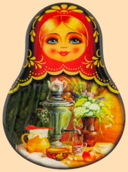 Каталог » Магниты » Магниты в форме матрёшки » Магнит матрёшка Чаепитие №2