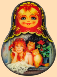 Каталог » Магниты » Магниты в форме матрёшки » Магнит матрёшка Рыжие котики