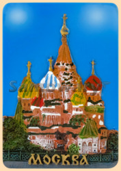 Каталог » Магниты » Магниты Москва - символы столицы » Магнит Храм Василия Блаженного (голубой фон, керамика)
