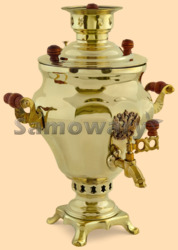 Самовар: - объем 2,5 литра - высота самовара 37 см - ширина самовара по ручки 31 см - материал: полированная латунь (жёлтый цвет) - на лицевой поверхности самовара размещён герб Российской Федерации, материал герба - латунь - самовар растапливается с помощью дров или шишек - труба для жарового самовара в комплекте (55 мм в диаметре) - вес самовара 2,6 кг Производитель Тула