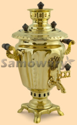 Самовар: - объем 3 литра - высота самовара 36 см - ширина самовара по ручки 29 см - материал: полированная латунь (жёлтый цвет) - на лицевой поверхности самовара размещён герб Российской Федерации, материал герба - латунь - ручки выполнены из дерева и покрашены коричневой морилкой - мощность ТЭНа 1 кВт, время закипания 15-20 минут - вес самовара 2,4 кг - производитель Россия (Тула)