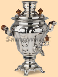 Самовар - - объем 3 литра - высота самовара 36 см - ширина самовара по ручки 29 см - материал никелированная латунь - покрытие не боится воды (серебристый цвет) - ручки выполнены из дерева и покрашены коричневой морилкой - мощность ТЭНа 1 кВт, время закипания 15-20 минут - вес самовара 2,6 кг - производитель Россия (Тула)