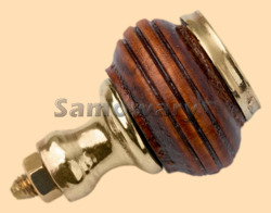 Самоварная стойка с ручкой в полном комплекте. Предназначена для крепления к крышке или колпачку самовара Отлита по старинному образцу самоварной ручки, сохранена полная аутентичность, в том числе и старинная резьба! Крепится к самовару с помощью латунной гайки, входящий в комплект со стойкой Высота стойки с ручкой 45 мм (полная) Диаметр латунной шляпки 21 мм, толщина 4 мм (имеется ввиду самая верхняя часть стойки) Высота втулки 17 мм, верхний диаметр 18 мм, нижний диаметр 13 мм На стойку нарезана резьба М5 (чтобы на неё можно было накрутить гайку или малинку) Высота деревянной ручки 16 мм (имеется ввиду сама деревянная проставка) Диаметр деревянной ручки 30 мм Материал стойки - полированная латунь Материал ручки - дерево (липа), покрыта я снаружи специальной тёмной морилкой На ручке нанесены продольные канавки, что придаёт ей отличной от других ручек внешний вид! Производитель Россия