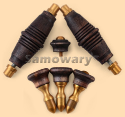 - 3 стойки (хватка) с деревянными ручками диаметром 25 мм, латунными болтами (длина 40 мм, резьба М5), латунными втулками (проставками) высотой 16 мм и латунными малинками в виде "пулек" на конце