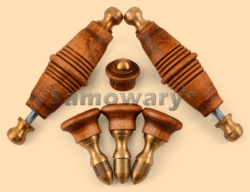 Полный комплект ручек для жарового (угольного, дровяного) самовара, в том числе для различных антикварных самоваров и электрических тульских самоваров В комплект входят: - 2 деревянные боковые ручки на самовар длиной 65 мм, стальные стержни (длина 85 мм, резьба М5) и 4 латунные малинки - 3 стойки (хватка) с деревянными ручками диаметром 25 мм, латунными болтами (длина 40 мм, резьба М5), латунными втулками (проставками) высотой 16 мм и латунными малинками в виде "пулек" на конце - 1 деревянная ручка на краник самовара диаметром 20 мм и латунным болтом для крепления к самовару (длина 20 мм, резьба М4) Все ручки изготовлены из дерева (липа) и вручную затонированы специальной пропиткой, что придаёт им оригинальный антикварный вид Древесина липы белая с лёгким розоватым или красноватым оттенком, мягкая. Прекрасно обрабатывается, легко режется и строгается, особенно подходит для резьбы по дереву Стойки, малинки, болты, гайки, проставки для стоек и другая фурнитура для данного комплекта изготавливается только из латуни Вес 150 гр. Производитель Россия