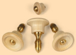 - 3 стойки (хватка) с деревянными ручками диаметром 35 мм, латунными болтами (длина 40 мм, резьба М5), латунными втулками (проставками) высотой 16 мм и латунными малинками в виде "пулек" на конце