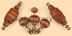- 3 стойки (хватка) с деревянными ручками диаметром 30 мм, латунными болтами (длина 50 мм, резьба М5), латунными втулками (проставками) высотой 16 мм и латунными малинками в виде "пулек" на конце