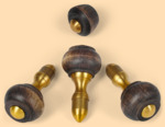 - 3 стойки (хватка) с деревянными ручками диаметром 25 мм, латунными болтами (длина 40 мм, резьба М5), латунными втулками (проставками) высотой 16 мм и латунными малинками в виде "пулек" на конце
