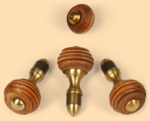 - 3 стойки (хватка) с деревянными ручками диаметром 25 мм, латунными болтами (длина 40 мм, резьба М5), латунными втулками (проставками) высотой 16 мм и латунными малинками в виде "пулек" на конце