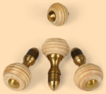 - 3 стойки (хватка) с деревянными ручками диаметром 25 мм, латунными болтами (длина 40 мм, резьба М5), латунными втулками (проставками) высотой 16 мм и латунными малинками в виде "пулек" на конце