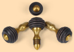 - 3 стойки (хватка) с деревянными ручками диаметром 25 мм, латунными болтами (длина 40 мм, резьба М5), латунными втулками (проставками) высотой 16 мм и латунными малинками в виде "пулек" на конце