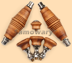 Полный комплект никелированных ручек для жарового (угольного, дровяного) самовара, в том числе для различных антикварных самоваров и электрических тульских самоваров В комплект входят: - 2 деревянные боковые ручки на самовар длиной 65 мм, стальные стержни (длина 85 мм, резьба М5) и 4 никелированные латунные малинки, покрытие которых не боится воды, т.е. не окисляется - 3 стойки (хватка) с деревянными ручками диаметром 25 мм, никелированными латунными болтами (длина 40 мм, резьба М5), никелированными латунными втулками (проставками) высотой 16 мм и гайкой из нержавейки на конце, покрытие которых (имеется ввиду болт и втулка) также не боится воды - 1 деревянная ручка на краник самовара диаметром 20 мм и никелированным латунным болтом для крепления к самовару (длина 20 мм, резьба М4) Все ручки изготовлены из дерева (липа) и вручную затонированы специальной пропиткой, что придаёт им оригинальный антикварный вид Древесина липы белая с лёгким розоватым или красноватым оттенком, мягкая. Прекрасно обрабатывается, легко режется и строгается, особенно подходит для резьбы по дереву Стойки, малинки, болты, гайки, проставки для стоек и другая фурнитура для данного комплекта изготавливается только из латуни с покрытием снаружи НИКЕЛЕМ, что предотвращает окисление латунных элементов и их потемнение. Такие, покрытые никелем элементы, надёжно защищены от внешней среды и не нуждаются в полировке и чистке после эксплуатации самовара. Вес данного комплекта ручек - 150 гр. Производитель Россия