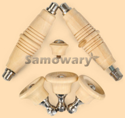 Полный комплект ручек для жарового (угольного, дровяного) самовара, в том числе для различных антикварных самоваров и электрических тульских самоваров В комплект входят: - 2 деревянные боковые ручки на самовар длиной 75 мм, стальные стержни (длина 95 мм, резьба М5) и 4 латунные малинки - 3 стойки (хватка) с деревянными ручками диаметром 35 мм, латунными болтами (длина 40 мм, резьба М5), латунными втулками (проставками) высотой 16 мм и латунными гайками на конце - 1 деревянная ручка на краник самовара диаметром 20 мм и латунным болтом для крепления к самовару (длина 20 мм, резьба М5) Все ручки изготовлены из дерева (липа) Древесина липы белая с лёгким розоватым или красноватым оттенком, мягкая. Прекрасно обрабатывается, легко режется и строгается, особенно подходит для резьбы по дереву Стойки, малинки, болты, гайки, проставки для стоек и другая фурнитура для данного комплекта изготавливается только из латуни Вес 150 гр. Производитель Россия