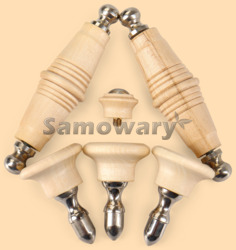 Полный комплект ручек для жарового (угольного, дровяного) самовара, в том числе для различных антикварных самоваров и электрических тульских самоваров В комплект входят: - 2 деревянные боковые ручки на самовар длиной 75 мм, стальные стержни (длина 95 мм, резьба М5) и 4 латунные малинки - 3 стойки (хватка) с деревянными ручками диаметром 35 мм, латунными болтами (длина 40 мм, резьба М5), латунными втулками (проставками) высотой 16 мм и латунными малинками в виде "пулек" на конце - 1 деревянная ручка на краник самовара диаметром 20 мм и латунным болтом для крепления к самовару (длина 20 мм, резьба М5) Все ручки изготовлены из дерева (липа) Древесина липы белая с лёгким розоватым или красноватым оттенком, мягкая. Прекрасно обрабатывается, легко режется и строгается, особенно подходит для резьбы по дереву Стойки, малинки, болты, гайки, проставки для стоек и другая фурнитура для данного комплекта изготавливается только из латуни Вес 150 гр. Производитель Россия