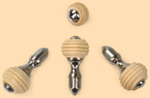 - 3 стойки (хватка) с деревянными ручками диаметром 25 мм, латунными болтами (длина 40 мм, резьба М5), латунными втулками (проставками) высотой 16 мм и латунными малинками в виде "пулек" на конце
