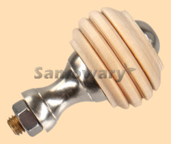 Самоварная стойка с ручкой в полном комплекте. Предназначена для крепления к крышке или колпачку самовара Крепится к самовару с помощью гайки из нержавейки, входящий в комплект со стойкой Высота стойки с ручкой - 40 мм (полная) Рабочая длина болта - 36 мм На болт нарезана резьба М5 (чтобы на неё можно было накрутить гайку или малинку) Высота втулки для стойки - 16 мм Диаметр самой широкой части втулки - 14 мм Диаметр самой узкой части втулки - 11 мм Материал элементов стойки - никелированная латунь. Это покрытие не боится воды, т.е. данное изделие не будет окисляться и темнеть на самоваре. Вы можете использовать самовар и не думать о сохранении его внешнего вида. Все будет так же как и было до его использования, до того как вы грели воду в вашем самоваре. Диаметр деревянной ручки для самовара - 25 мм Высота ручки - 15 мм Материал - липа, натуральный цвет, без какого либо покрытия лаком или краской Производитель Россия