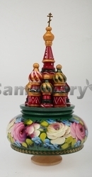 Высота музыкального сувенира 20 см Диаметр в самой широкой части 12 см Изготовлен из дерева липы, ручная авторская роспись, сверху покрыт глянцевым лаком Древесина липы белая с лёгким розоватым или красноватым оттенком, мягкая. Прекрасно обрабатывается, легко режется и строгается, особенно подходит для резьбы по дереву. Музыкальный сувенир вращается на подставке и проигрывает одну из мелодий: либо "Подмосковные вечера", либо "Катюша" Какая мелодия встроена в музыкальный сувенир заранее сказать к сожалению нельзя Вес - 300 гр. Производитель Россия