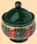 Каталог » Роспись - Городецкая » Солонки Городецкая роспись » Солонка новая хохлома Золотая пора на зелёном (малая)