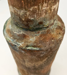 Это та часть самовара, куда закидываются дрова при его растопке. Без топки (самоварной колбы) самовар невозможно использовать! Высота топки - 41 см Расстояние от верха топки, до того места, где она расширяется - 15 см Верхний выходной наружный диаметр топки - 82 мм Нижний наружный диаметр топки (то место, где находится колосник у самовара) - 152 мм Материал - латунь