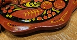 Дефект - отбит нижний угол у подставки для набора специй (подробнее на фото) Высота 9 см Диаметр 14 см Материал дерево Хохлома, ручная роспись Производитель Россия